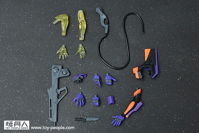覺醒Ver.的重點當然就是這隻“神之左手”,不過EVA的電纜、步槍跟戰術小刀也沒有少,而原先應該有的左手跟拘束器也是可以製作出來的。