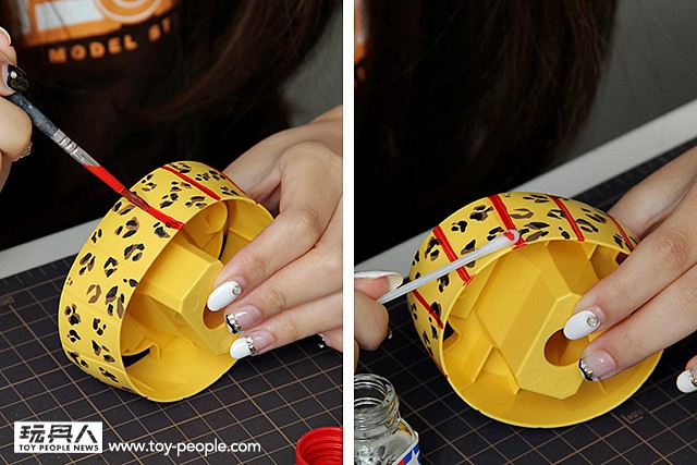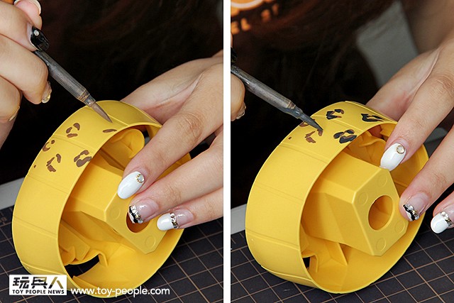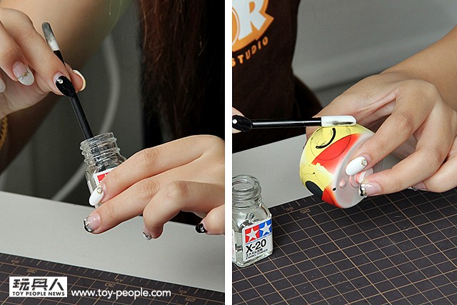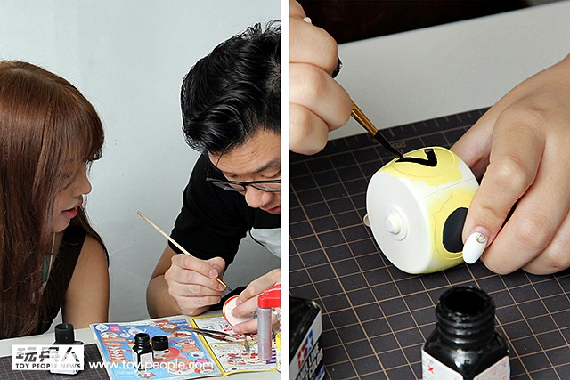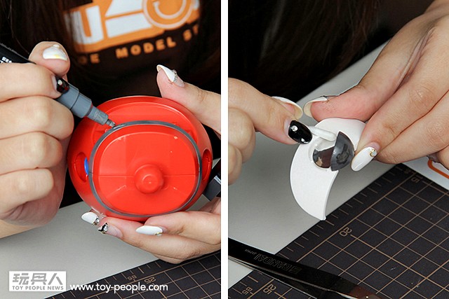 黃琳:「入墨,我會喔。針對細節部分入墨,突顯立體感!使用田宮墨線液來點墨進去。」