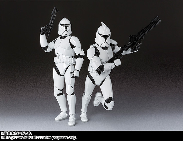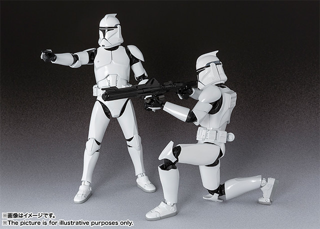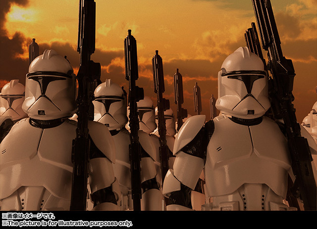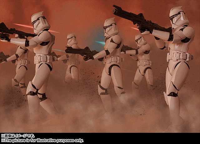 出現在《星際大戰二部曲:複製人全面進攻》Starwars:Attack of the Clones 當中的複製人軍隊Clone trooper 這次也將以S.H. Figuarts可動系列來商品化呈現,首先以初階(Phase1/フェイズ1)的兵種推出,可能之後還會有指揮官等級的軍種再上市販售。