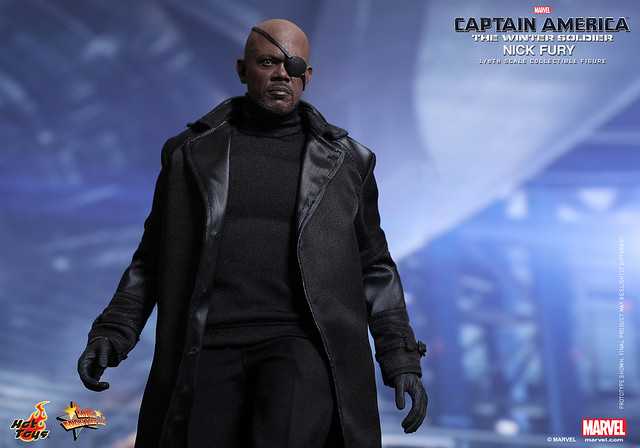 香港知名1/6 比例品牌Hot Toys 公司今天悄悄地公佈了「美國隊長2:酷寒戰士」(Captain America: The Winter Soldier)系列的一款新商品,繼去年五月公佈了「獵鷹」(Falcon)的作品之後,沈寂一段時間後將要推出最新大作:神盾局局長「尼克.福瑞」(Nick Fury)。
