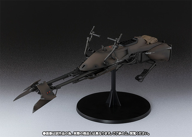 在電影星戰故事擔任先行刺探敵情的斥候兵種,總是在軍隊前面以駕駛快速機車來蒐集情報,此次將其載具機車和斥候兵都以S.H. Figuarts可動系列來呈現,載具的細節等等都十分仔細來製作,附有其載具專用的支撐架、底座等等,斥候兵附有小把的武器雷射槍,預計將在魂web線上商店開放訂購,喜歡《星際大戰》系列的玩具人可以參考一下歐。