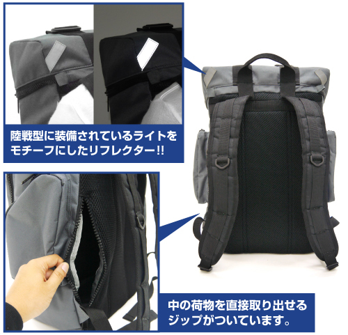 此次以「陸戦型ガンダム」機動戰士第08MS小隊中陸戰型鋼彈為主題式設計,製做出有大容量的收納功能,和有雙側邊的開口袋收納等等,更加提升其使用的功能性,在有「第08MS小隊」字樣的布章上可以和背包上魔鬼氈的材質來黏合或摘卸,背包上面的魔鬼氈條也可以使用其它市售的布章等等來增加其裝飾性,也設計有夜光警示安全作用的邊條,可以在夜間行軍來使用標示使用者的位置,喜歡這類動漫主題背包的玩具人,可以購買一個下次參加露營可以使用歐!