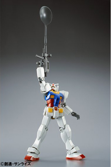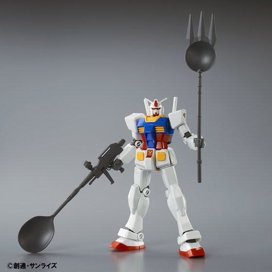 除此之外,本作將附有一款鋼彈模型35週年所推出的新品「HGUC RX-78-2 鋼彈REVIVE」追加新武器「湯匙光線步槍」與「叉子三叉戟」,充分展現了「美味」與「樂趣」結合的特殊造型!極具收藏意義的特殊作品,絕對值得各位鋼彈迷珍藏!