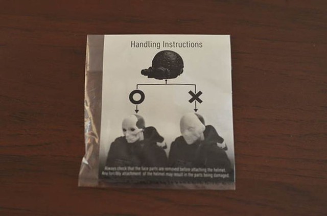 ▼ 說明書,就一頁紙,介紹了頭盔的正確帶法。意思就是不要在硫酸臉的狀態下再帶頭盔。