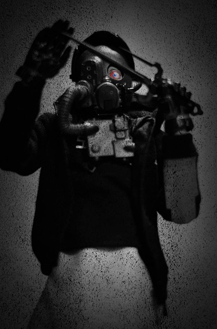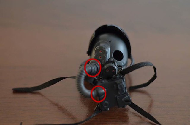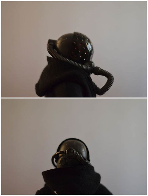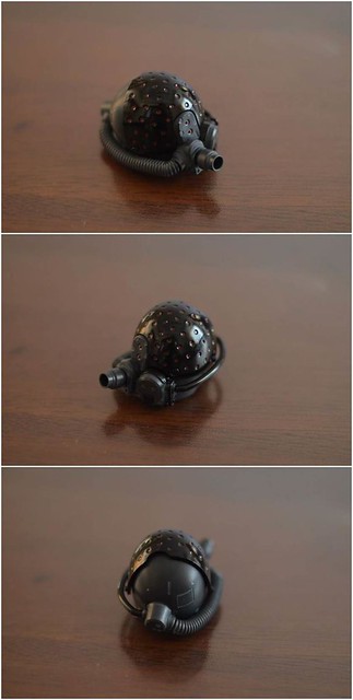 ▼ 頭盔,塑膠材質,最外一層拋光過的所以很亮,裡面的凹進去的紅點也是區別於他其他幾個兄弟的標誌,只有赤霧的頭盔上是紅色的點。頭盔最外層的面罩可以打開,這樣就可以漏出本體的紅色眼睛。