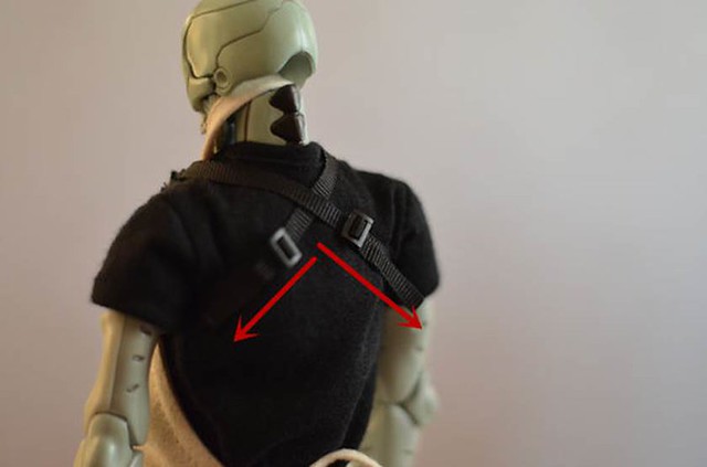 ▼ 固定在身上採用交叉固定法。只要將帶子穿過活扣就可以了。