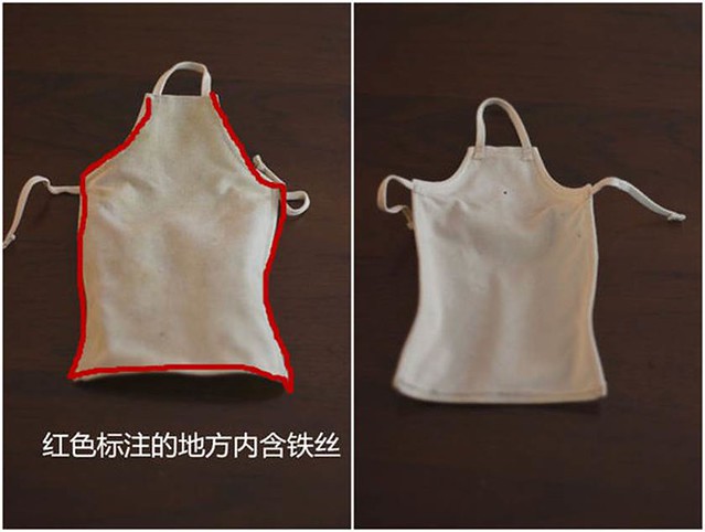 ▼ 圍裙,紅色標注的地方內含鐵絲,可以隨意凹造型,見下圖。
