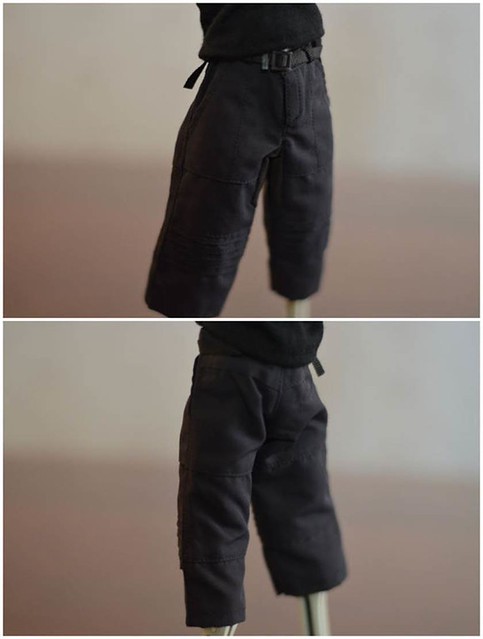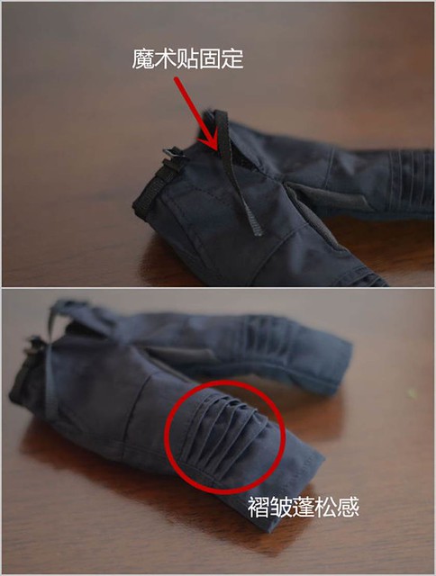 ▼ 褲子採用腰帶和魔術貼固定,沒有扣子,比較可惜。膝蓋處的褶皺設計很帶感。