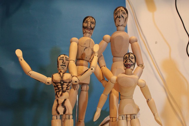 ▼ 巨人家族合照,這就是拿市售的木偶人來畫的,畫得不好看還請見諒,主要是達到風格怪異的效果就好。