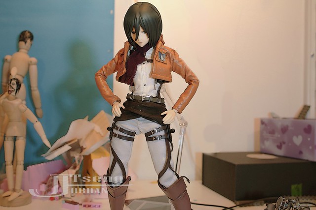 ▼ 這次是用RAH 的米卡莎來拍攝,這也是我第一次拍12 吋人偶,外觀和可動度都比6 吋精緻許多,但是因為是兩倍的尺寸,所以支撐的困難度也加倍,一定要時時刻刻有支架支撐。而拍完這一集我的米卡莎身上也有很多地方受傷了,米卡莎以哀怨表情列舉以下幾項。