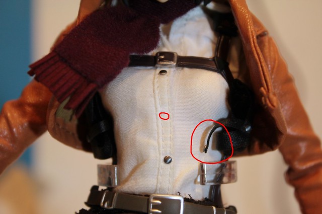 ▼ 中間的釦子掉了,左邊的立體機動控制器收納帶的繫帶斷掉。