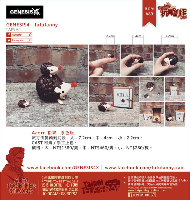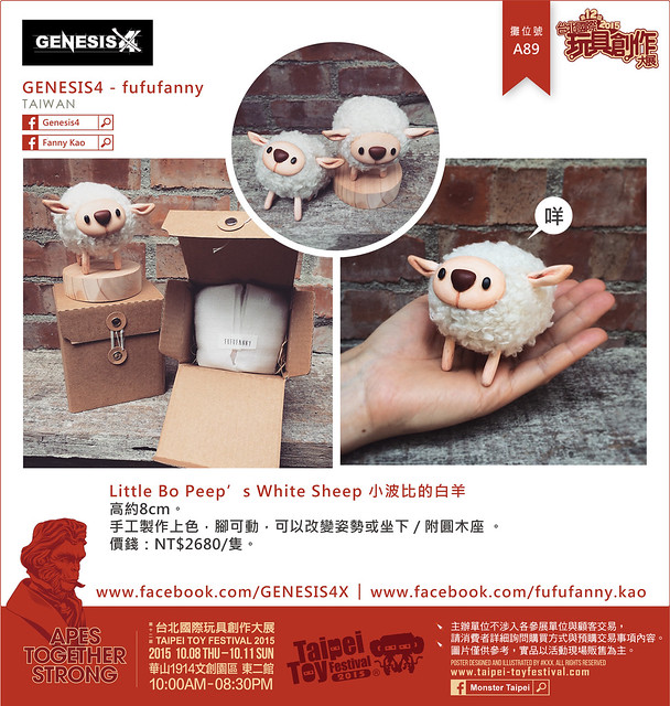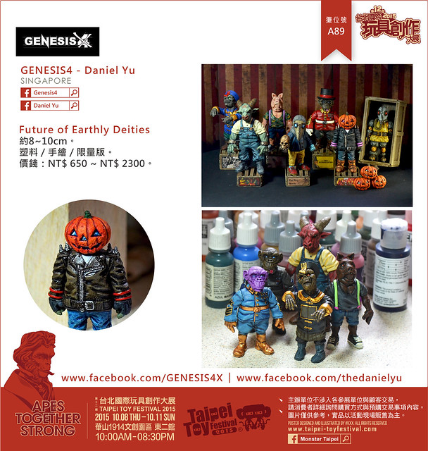 活動展覽 台北國際玩具創作大展 2015 台北國際玩具創作大展 參展單位介紹:GENESIS4 熊倒 2015-09-07 13:58:24 分享 ✕ 分享 已複製網址 分享到 Facebook 分享到 LINE 分享到 Reddit 分享到 Twitter 分享到 Plurk 分享到微博 GENESIS4 A89團隊網址:https://www.facebook.com/GENESIS4X >>> 點此看更多精彩的「2015 台北國際玩具創作大展」相關情報與報導!!! 熊倒 玩具熱愛者與情色蒙面藝術家的Rockin'Jelly Bean的信徒。對12吋、吊卡玩具以及復古造型有莫名的狂熱。