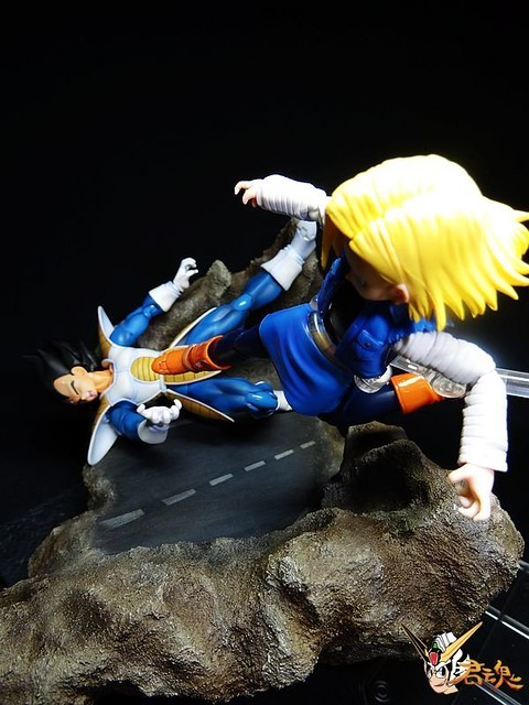 譬如艾斯或沙鱷有較大的動作表現,利用此特點可以延伸動作效果,讓公仔更具動態性。又如克南克斯飛騰預備刺擊的動作,簡單增加突出物風格的地形場景,就可以為他尖銳的攻擊加分。悟空多個氣功也是一樣,簡單但也同樣有加分效果。