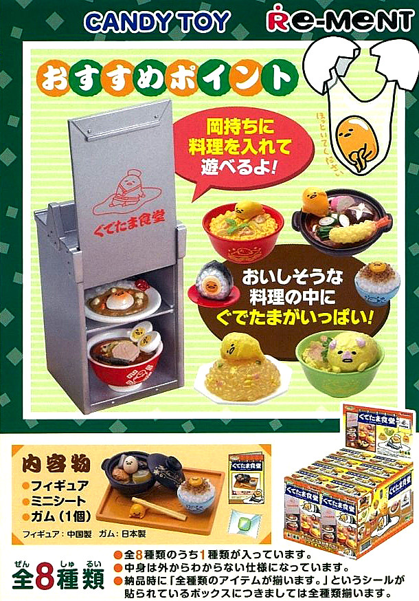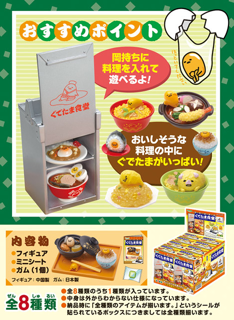 推出許多可愛角色與料理結合為可愛盒玩的品牌「RE-MENT」,繼西式料理的「蛋黃哥咖啡廳」之後,將繼續推出「蛋黃哥」主題系列作品,這次是日式風味的「蛋黃哥食堂」!~ 每一款料理還搭配了食堂小配件,全套集齊你也能開間又懶又可愛的『蛋黃哥食堂』!