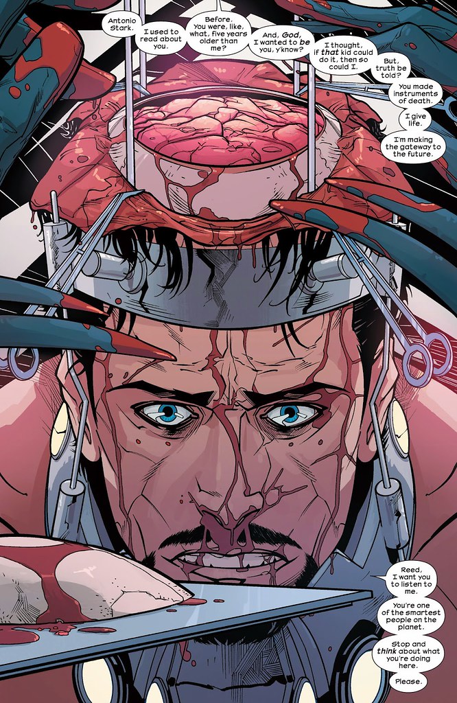 總統一死後,最高能源部長霍華德變成臨時總統,而前總統在死前因為不滿尼克‧福瑞對明日之子的戰略不積極,於是打算逮捕他和終極戰隊,不過全都逮捕失敗,而當臨時總統上任後,將 Flumm 選為神盾局局長,然而東尼透過前女友 Carol(正史世界是驚奇女士,在這世界為神盾局前局長)的幫忙下,跟霍華德總統見了面,但卻被當作和談條件,將東尼以俘虜身分送給李德,而李德發現東尼有腦瘤,於是將其腦袋剖開,打算慢慢折磨致死。