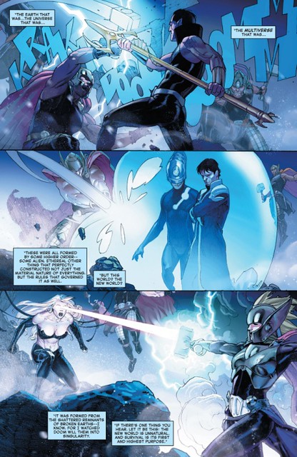 所有世界都毀滅了,只剩下正史世界 Earth-616,與終極世界 Earth-1610,而只有一個世界能存活,於是兩個世界產生大戰,但最終都毀滅了。不久之後,正史世界的末日博士獲得了強大的力量,他將十幾個世界重新塑造,融合成一個全新的星球 Battleworld,該星球每個區域就是一個世界。