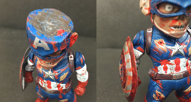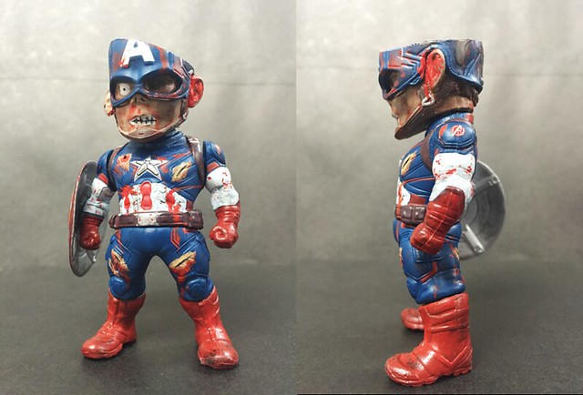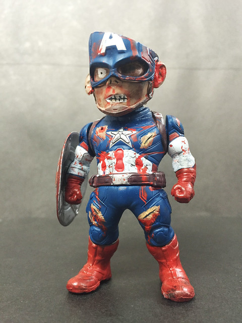 本人一直都有收藏Kids Nation 的Ear Plug 系列鋼鐵人。最新系列中的雷神與美國隊長自然不是我的茶。雷神送人了,剩下的美國隊長如何處置?身邊的朋友不約而同地不喜歡美國隊長。記得之前美漫達人POPO 講述過漫威有一個系列是喪屍世界,於是靈機一觸,將隊長改裝成Earth2149 中的喪屍隊長。(相關介紹:超級英雄殭屍化!熱賣的異色系列漫畫《漫威活死人》系列介紹!)