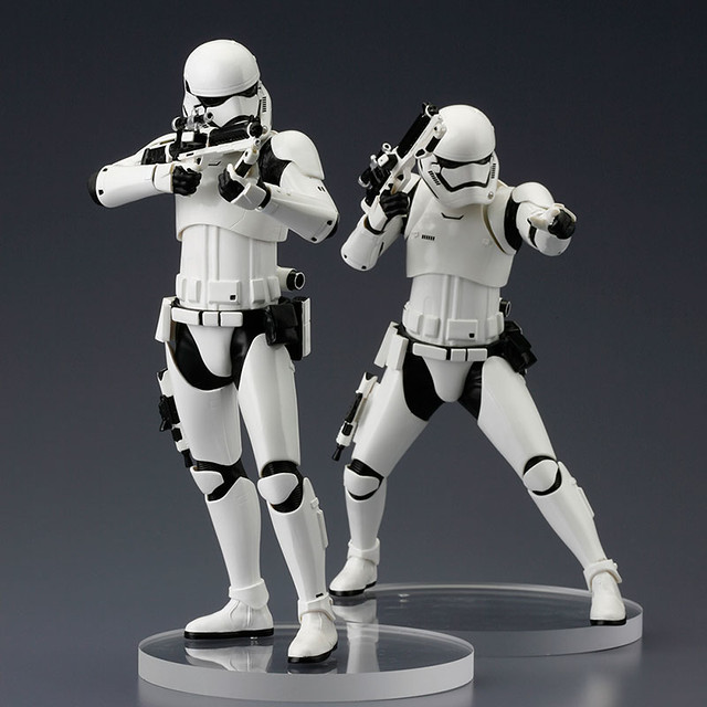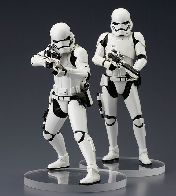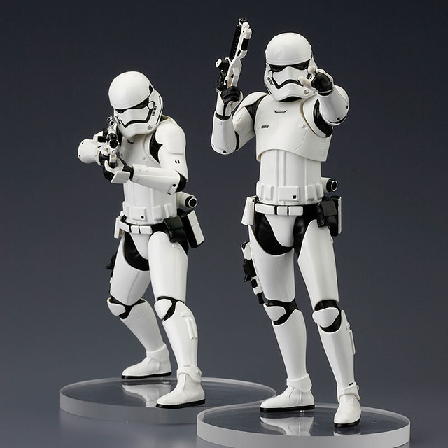 最近似乎每家廠商都瘋狂的推出全新電影「星際大戰七部曲:原力覺醒」(Star Wars Episode VII: The Force Awakens)之帝國組織「First Order」中的「帝國暴風兵」(First Order Stormtrooper)作品。而日本玩具大廠壽屋(KOTOBUKIYA)公司繼前推出了舊版白兵雙人組合包之後,立馬也跟上進度,在旗下ARTFX+ Statue 1/10 比例像系列推出帝國暴風兵的雙人組合包作品。