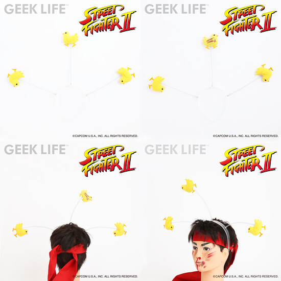 在經典格鬥電玩《快打旋風》系列中,只要角色連續遭受到一定的攻擊,就會呈現失去意識並且無法操控的狀態,此時會伴隨著角色暈眩搖晃的姿態,在頭頂出現飛來飛去的情景。這次所推出的作品,就是令人能夠輕鬆呈現這個有趣狀態的便利商品!~ 採用了髮箍設計將其戴在頭上,藉由彈簧所連接的小鳥玩偶就會隨著動態飛舞,玩過快打旋風的玩家一定能夠會心一笑!XD