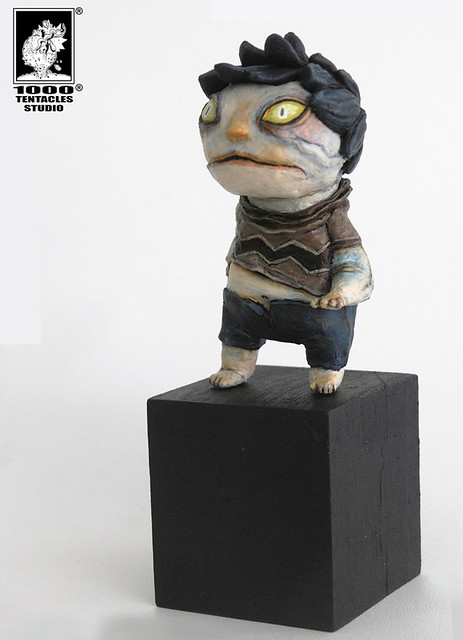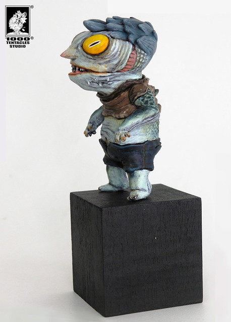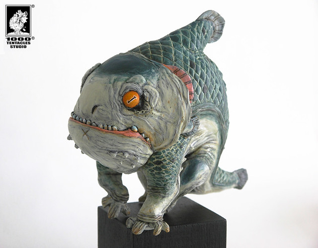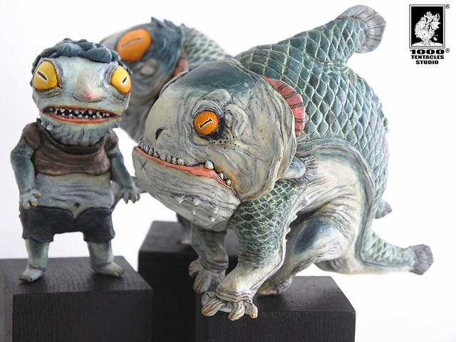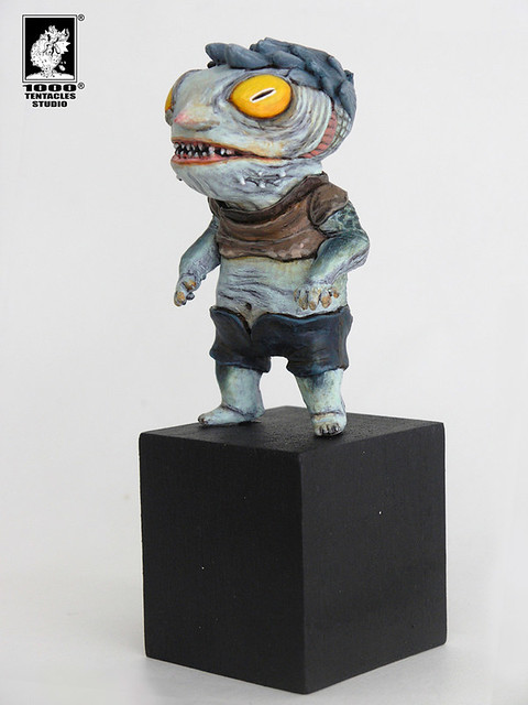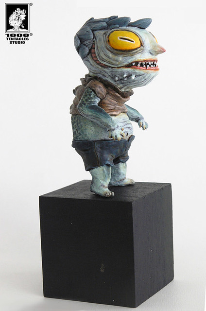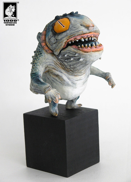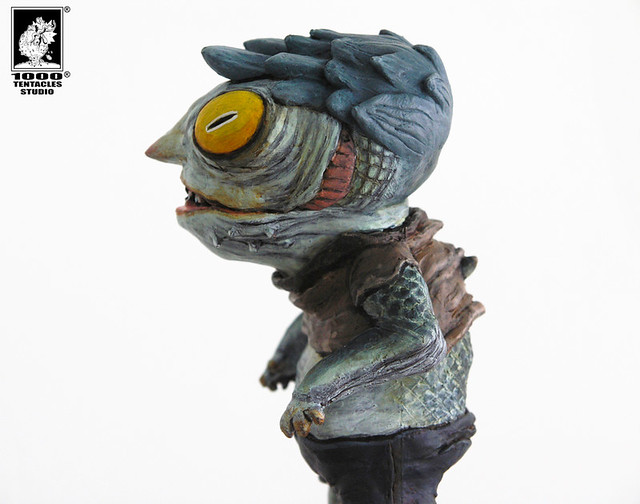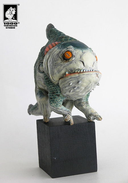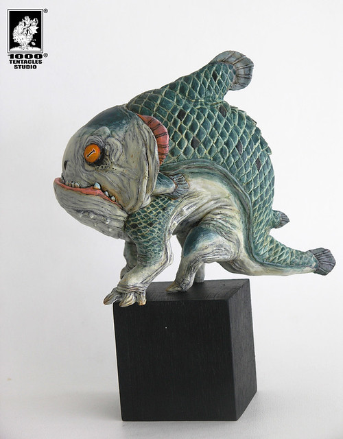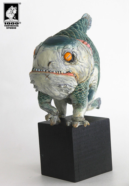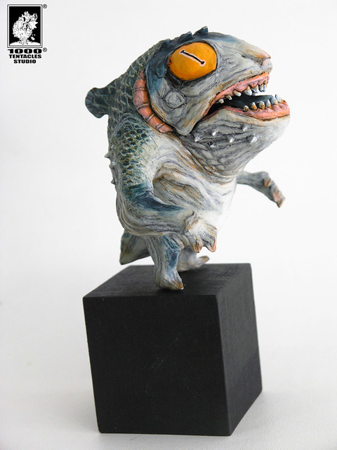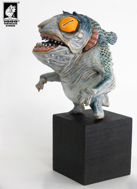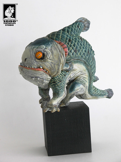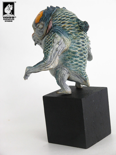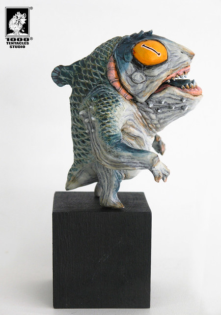 今次的創作概念發想:一個小男孩某天被一隻怪鱼咬到後,一天深夜突變成為一隻可怕的魚怪,在牠特殊的變化型體過程,魚怪最终成為一隻兩棲類生物,帶著沉重的脚步慢慢走入湖中後消失不見,其間這個「突變過程」被一些經過湖邊的人目擊到,偷拍下照片後消息就慢慢傳開來了,想到此次概念的梁文國就將這故事製作成「突變-變身」過成的立體創作,也是1000Tentacles今年剛推出的"變異者"Metamorphosis的其中一個系列作品。