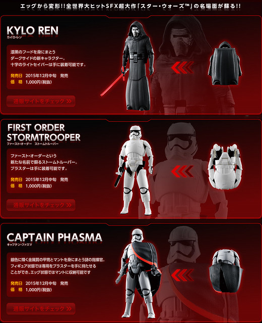 預計將收錄有這次神祕的新敵人基羅·雷恩(Kylo Ren)、普拉斯馬隊長(Captain Phasma)、帝國暴風兵(First Order Stormtrooper)等等三款,基羅·雷恩附有其特殊十字型的光劍,普拉斯馬隊長也重現預告當中全身都是金屬銀配色,喜歡電影《星際大戰》系列的玩具人千萬別錯過囉!