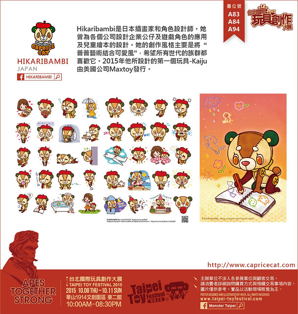 Hikaribambi是日本插畫家和角色設計師。他曾為各個公司設計企業公仔及遊戲角色的應用及兒童繪本的設計。她的創作風格主要是將”普普藝術結合可愛風”,希望所有世代的族群都喜歡它。2015年他所設計的第一個玩具-Kaiju由美國公司Maxtoy發行。