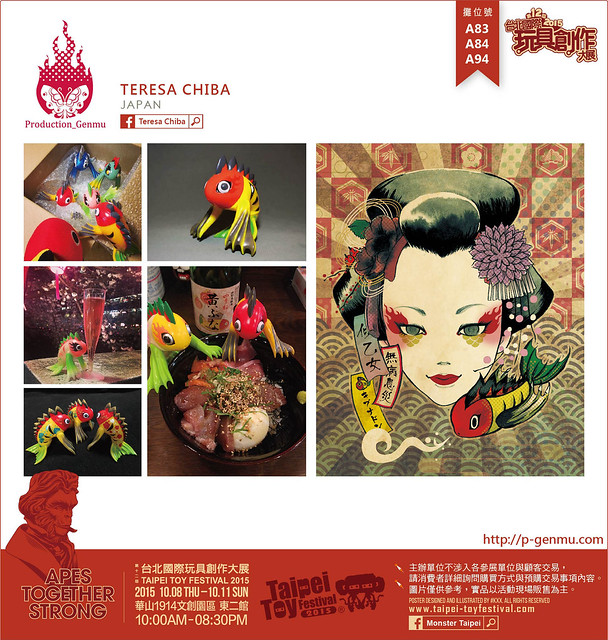 Teresa是一個不知疲倦的藝術家,她以自己的名義出產”Production_Genmu”。發佈作品不僅有插畫和設計,還運用到各種地方上,像是浴衣(夏季和服),日常用品和現場表演等,她還在東京設計學院任教文字設計的插畫技巧呢!