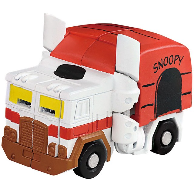 日本玩具公司TAKARA TOMY的「Q變型金剛」系列 Q TRANSFORMERS之前成功推出了Holle Kitty的變型Q車等等多款有趣商品,此次將結合人氣漫畫《史奴比》Snoopy,將史奴比也溶入了可以變型的「QT系列」,也在側面加上他夥伴金絲雀的圖案模樣十分有趣。
