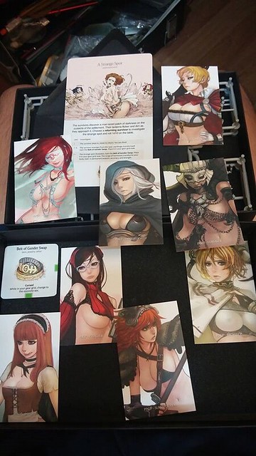 角色設計非常日式,但其實是香港人畫的喔!還附了遊戲道具的卡片,似乎是性轉戒指....恩...對遊戲規則我就比較不熟悉了(附帶一提,該公司的模型絕對不是只有女角,文末會附上官方網站網址,請有興趣的人參觀一下)