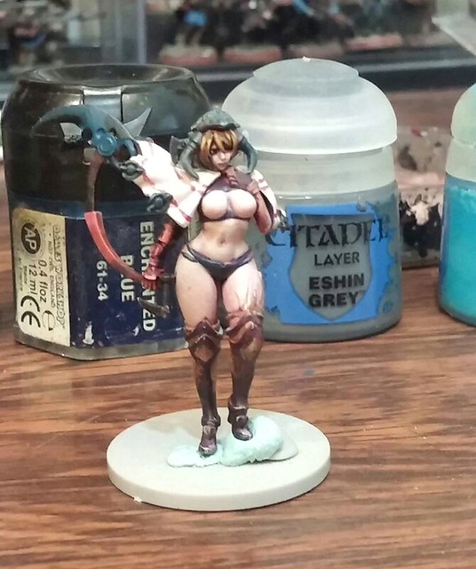 這邊澄清一下,原畫設計她是穿薄紗,所以我只有上淺淺的藍色,但還是一直被誤會沒穿,所以在後續我才又修正了顏色