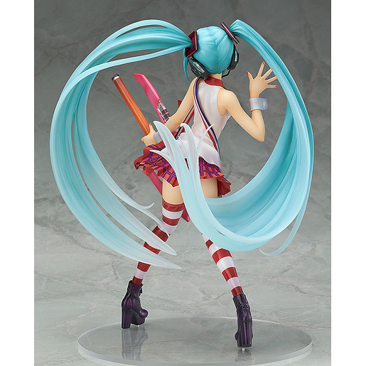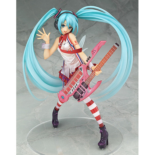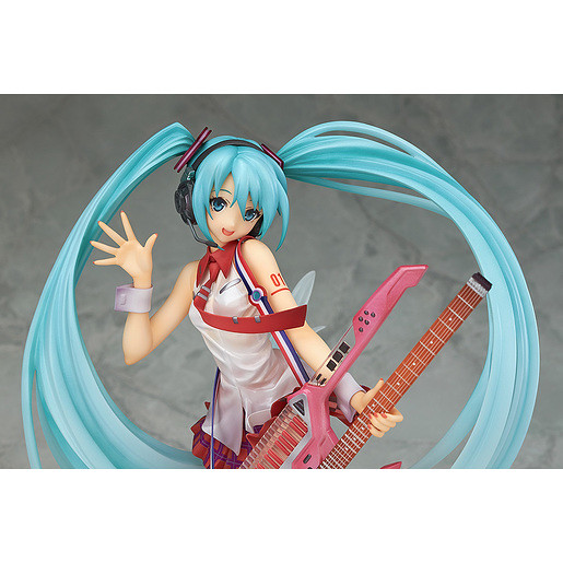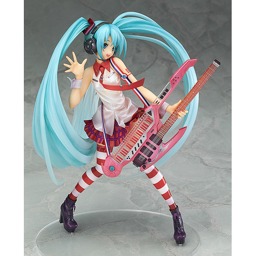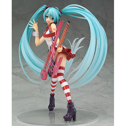 超人氣美少女初音未來(初音ミク)是電腦世代文化所產生的虛擬角色人物,特別由貞本義行老師所繪製的初音未來此次拿著有特殊造型的電吉他,並且穿著紅白條紋配色的襪子更顯得十分搶眼,立體商品化也將老師所繪製初音雙馬尾的空氣飄動感完整製作出來,特典收錄有A3尺寸的掛毯,將會於GOODSMILE ONLINESHOP線上商店於2015年9月3日至30日的期間接受對其有興趣的玩具人的訂購,喜歡《初音未來》的玩具人千萬別錯過囉!