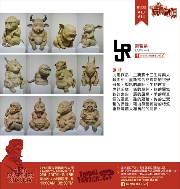 詼諧以及諷刺的圖像,讓現實裡的事物與想像中的畫面不斷的交織,並呈現在各個時期的繪畫作品上。本次的展覽將其中充滿童趣與潮流元素的系列創作(血與骨),取其角色並融合了台灣本土漫畫(諸葛四郎)的特色在新的創作內容上,並將角色立體化來搭配此次的展覽,創作出個人全新風格的獨特作品。