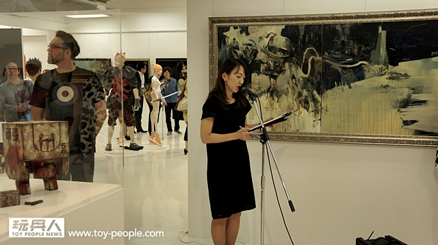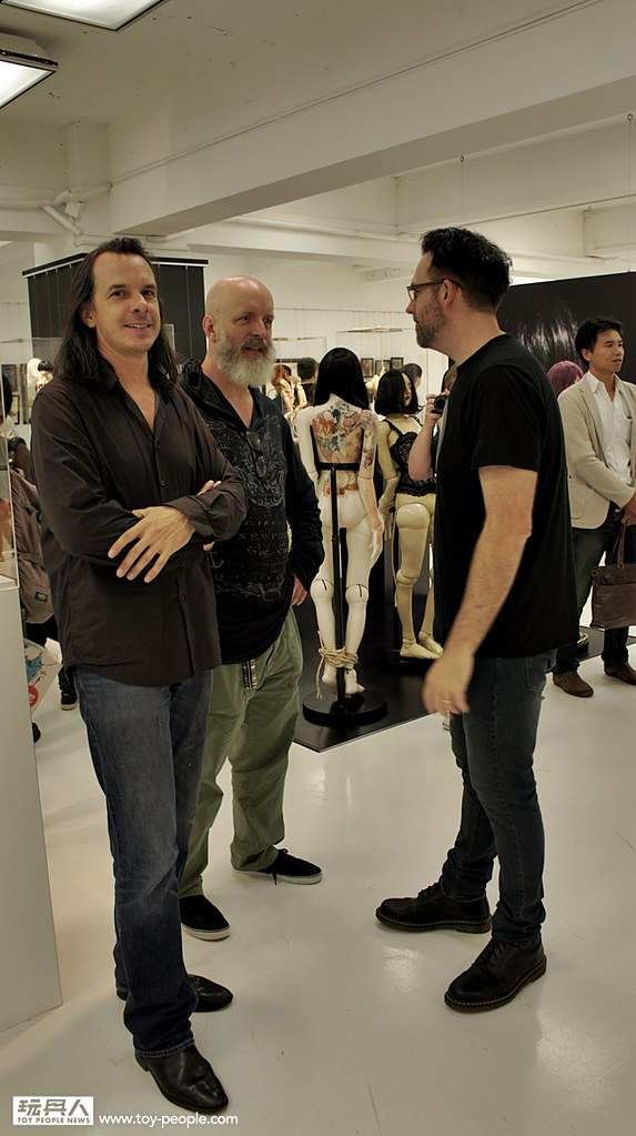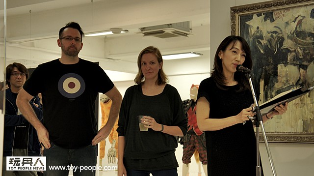 當然,開幕酒會的重點就是開幕啦!在主人人很開心的講了一堆小編聽不懂的日文之後,終於Ash 登場了!現場馬上轟聲雷動的歡迎Ash 登場,不過Ash 很快的就開始介紹這次與會的設計師:第一位是木頭大師Amanda Visell;第二位則是來自threeA 的新銳美女人形師Siuyin;緊接著第三位與第四位則是藝術家Phil Hale 與William Wray。這幾位設計師也都帶來許多精彩的展品啊!