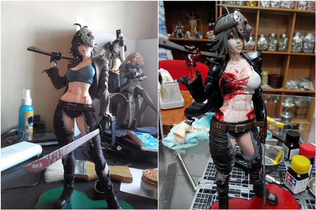投稿 日系 壽屋 電影作品 壽屋 Horror美少女 傑森 重塗 Vcrz Vcrz 2015-09-21 10:48:14 分享 ✕ 分享 已複製網址 分享到 Facebook 分享到 LINE 分享到 Reddit 分享到 Twitter 分享到 Plurk 分享到微博 這是某個失眠的夜晚,我看著這兩只PVC突然覺得她們太乾淨了不夠兇,所以有了才開來重塗的靈感。 首先先從傑森下手,想說把她弄得更血腥就像剛剛殺完人看著你似的。用AB補土給她做了幾道新鮮出爐的傷口,增加血腥感。由於拿刀砍人一定會被血飛濺到,所以在胸前弄了一灘血,手部也是弄成血淋淋的感覺。 前後對比圖,原本的膚色比較黃所以我重塗時把膚色噴的比較蒼白這樣才有魔物鬼怪的感覺。 第一次畫眼睛實在沒有頭緒該怎麼裝飾眼睛,所以不是很理想,請多多包涵。 ※本文為投稿文章非本站立場,內容如有疑慮請來信告知。 Vcrz Vcrz (゚д゚≡゚д゚) 嚇!懶到沒寫自介!!!???
