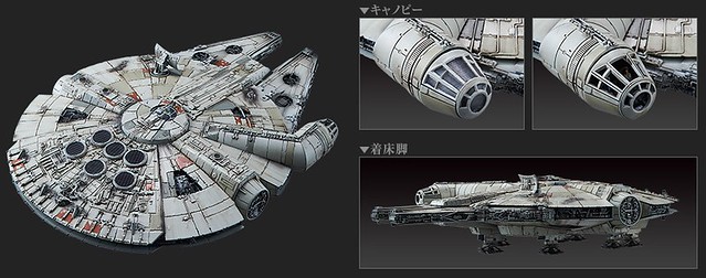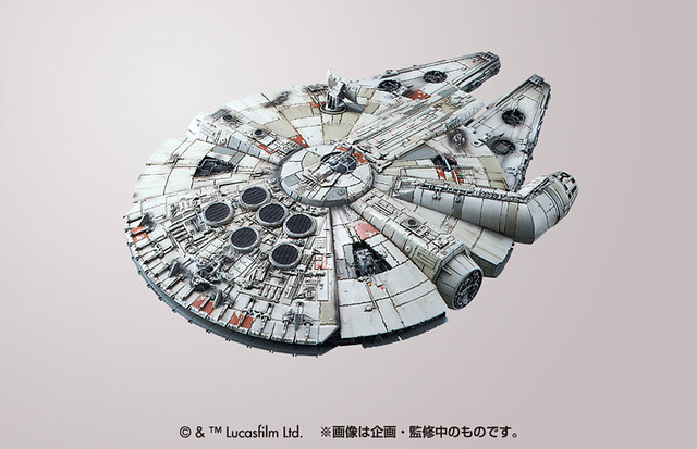 這次再星際大戰第七部曲原力覺醒的預告當中再次出現了千年鷹號(Millennium Falcon),當然相關的各家玩具廠商當然也相中其周邊產品的商機無限,此次日BANDAI萬代玩具公司的模型事業部BANDAI Hobby將推出スターウォーズ 1/144 ミレニアム・ファルコン(フォースの覚醒),1/144尺寸比例的千年鷹號組裝模型商品。