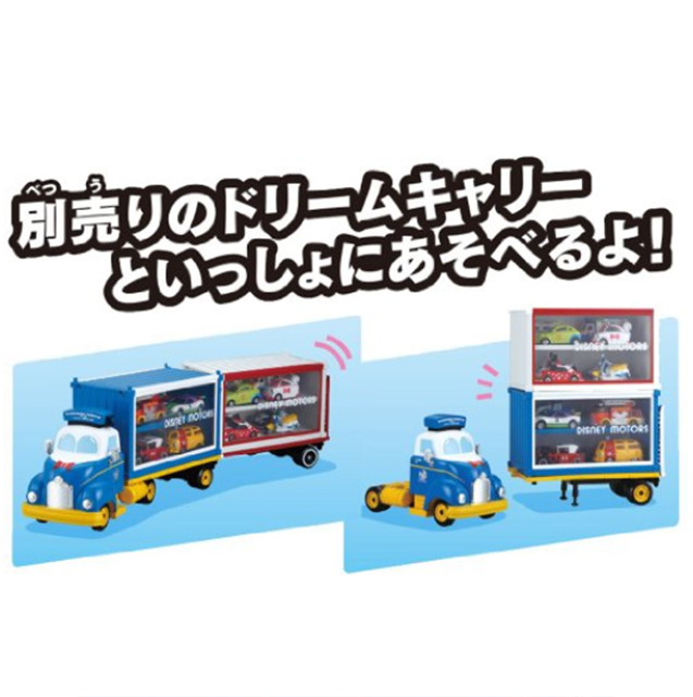 日廠TAKARA TOMY公司之前推出十分受歡迎的「米奇展示貨櫃車」後,將在下個月份推出エクスプレスキャリー 唐老鴨展示貨櫃車的版本,當然就以唐老鴨藍白顏色的配色來塗裝,也附一個半邊透明門的貨櫃,讓各位玩具人可以更多變化的來收納你所擁有的「迪士尼小汽車」,有拖板車、貨櫃車、聯結車等等不同的變換造型,讓這款貨櫃車有更多不一樣的趣味!