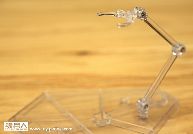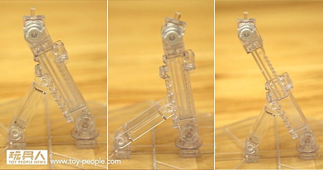 ▼ 除了能夠調整傾斜角度之外,也能夠伸長主要支架來對應更多不同的需求。比方說讓角色跳躍停留在空中的姿態。使用透明的設計,較容易在視覺上忽略它,把重點集中在人偶本身。