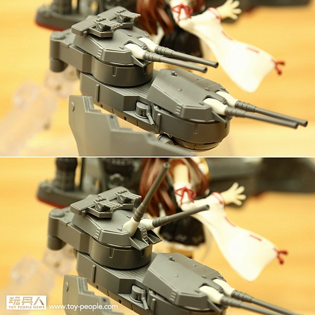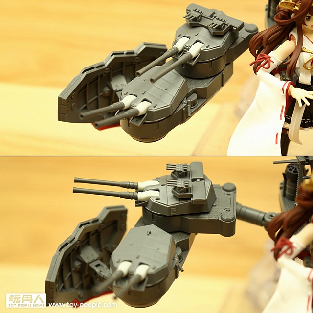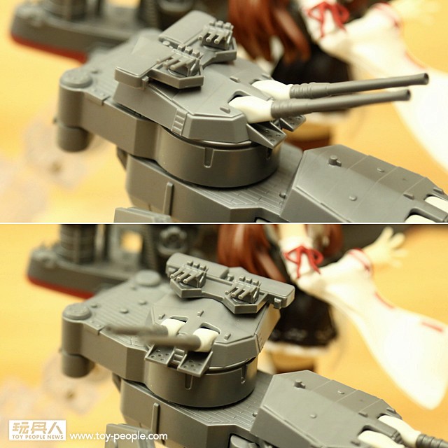 ▼ 15.5cm 三連裝副炮可轉動砲身;艦裝兩側以及艦娘腰部的毘式15.2cm 單裝砲同樣也能夠轉動,改變射擊角度。