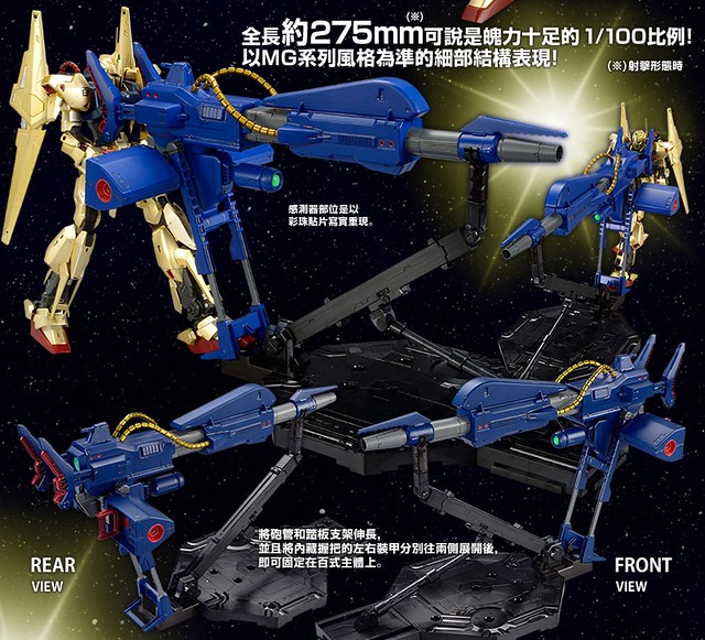 ▲ MG 1/100百式專用Mega火箭巨砲,配備可以伸縮、展開的機關裝備,可變成射擊型態或收納型態。必須集合兩台MS的發動機,才能提供足夠的能量。