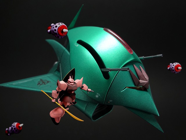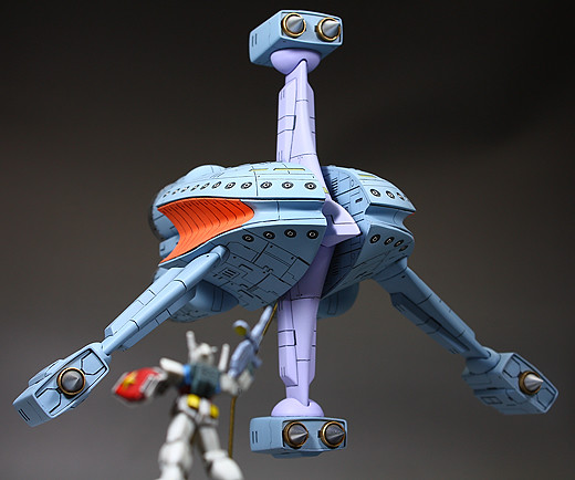 ▲ 1/550舊模改造MAN-03 BRAW BRO,鋼彈正史中第一架新人類試作機,是吉翁旗下弗拉納岡機構開發出來的大型MA。主武裝是有線式遙控4門Mega粒子砲,火力可匹敵麥哲倫戰艦。可惜駕駛員的新人類素質不足(誰叫你是大叔不是美少女啊),最後飲恨敗在鋼彈手下。