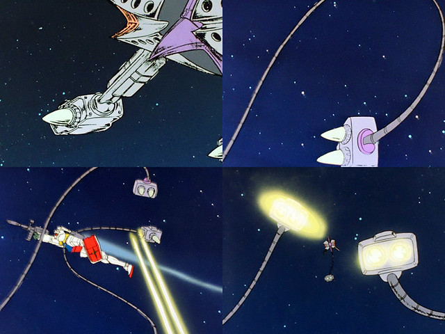 ▲ Incom有線式精神感應砲,特徵是圓筒狀攻擊端子,由具有張力的電纜所牽動,可以達到比一般有線感應砲更快速的運動速度。後來運用在鋼彈MK-V、S鋼彈及杜賓狼等機體。