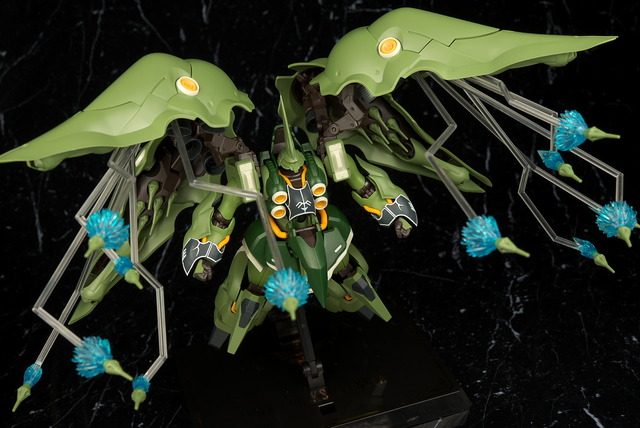 ▲ ROBOT魂RX-93 ν鋼彈精神感應框體發動仕樣,以透明綠材質成形,並施以局部珍珠白塗裝,可以做為鋼普拉改造的參考。