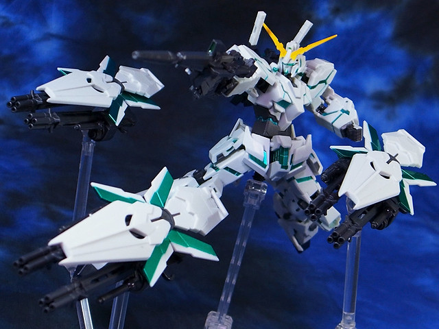 ▲ HGUC 1/144 RX-0獨角獸鋼彈,搭載了精神感應盾牌,不但能夠當成全方位盾牌抵擋來自四面八方的攻擊,盾牌下還掛載了兩門光束格林機槍,可進行全領域包圍射擊。