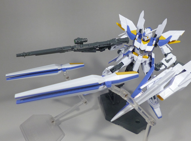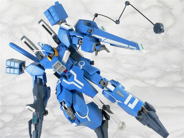 ▲ HGUC MSN-001X鋼彈Delta改,採用了模擬新人類的NITRO系統,但只能驅動兩座翼狀感應砲,機體在高出力時會從散熱口發出青色火焰。