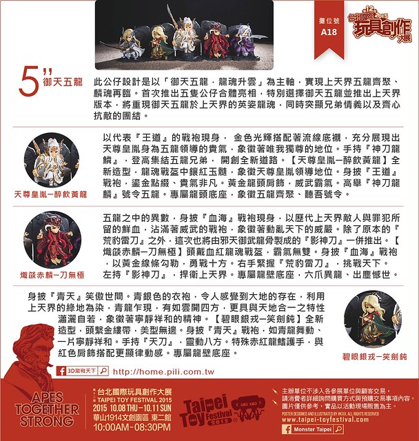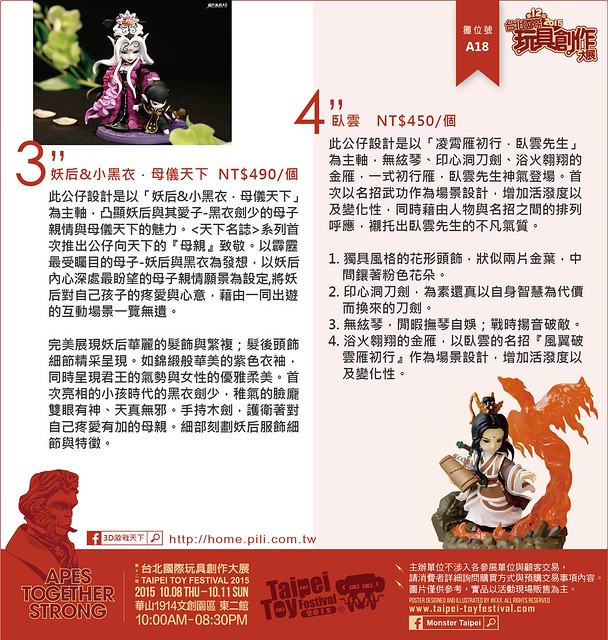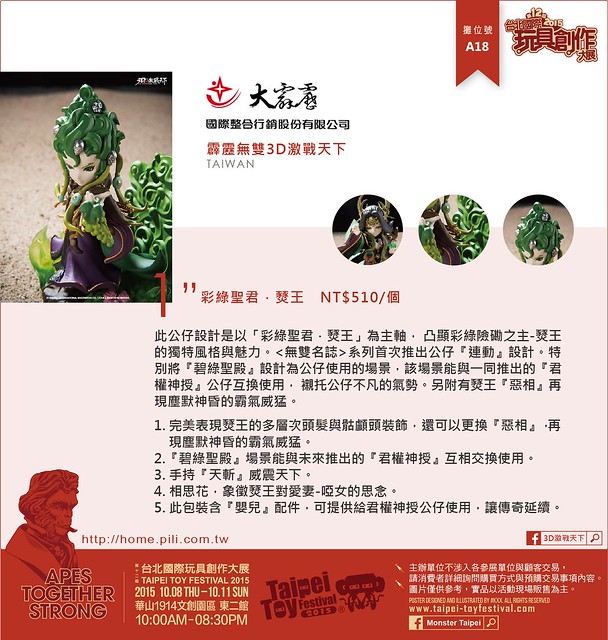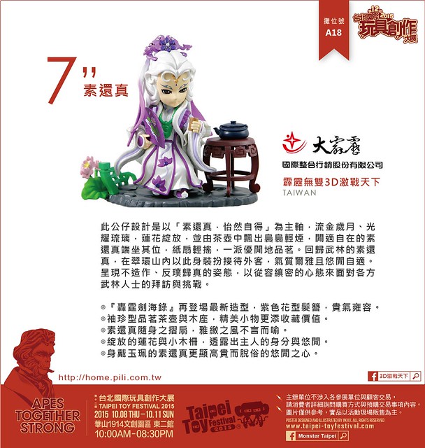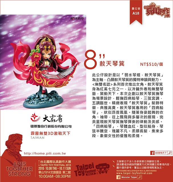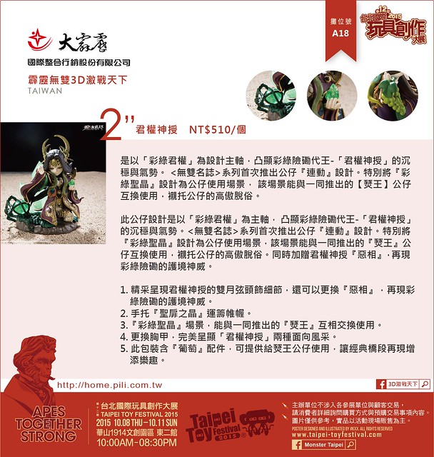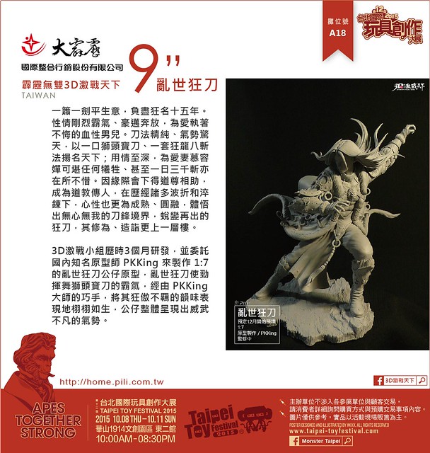 藉著推出『霹靂無雙3D激戰天下』的系列公仔,我們製作了三種主題:「無雙」、「激戰」、「天下」來呈現品牌的豐富性,並達成市場區隔;而在製作技術上,有別於一般手捏塑形的方式,採用3D原型塑模與3D列印打樣,來確保公仔造型的細節與品質之掌握。我們希望透過這些可愛的小尖兵,能幫助您了解霹靂二十五年來的精華歲月,還有這些霹靂英雄帶給我們最美好的英姿回憶。