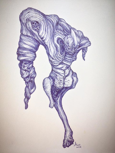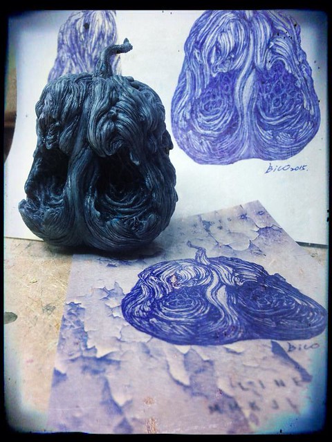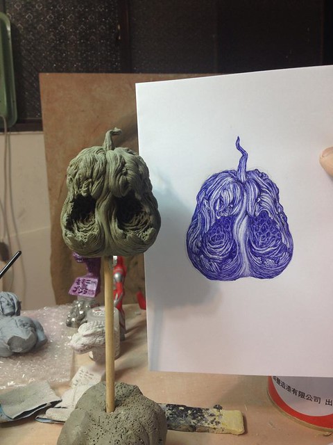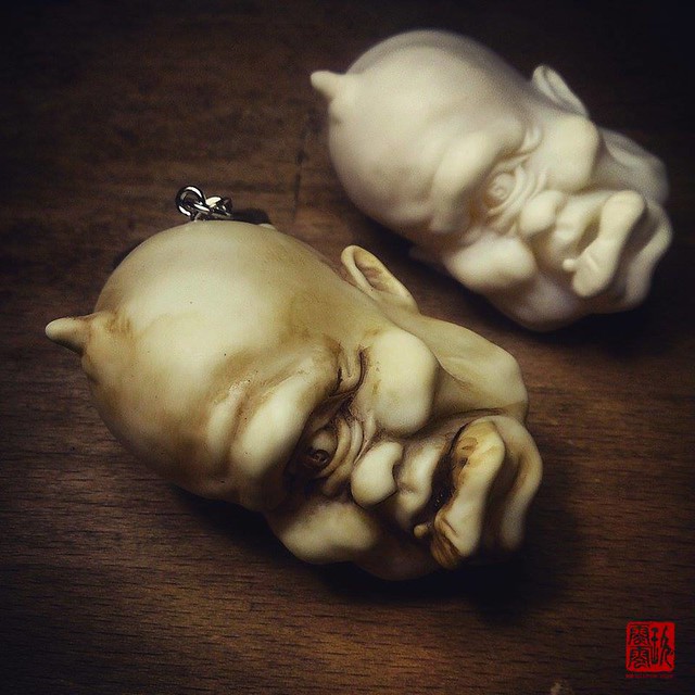 作品理念:煩惱累人的內心,爭扎出一連串多重面相的苦悶,結成苦果,反觀並警惕自我。