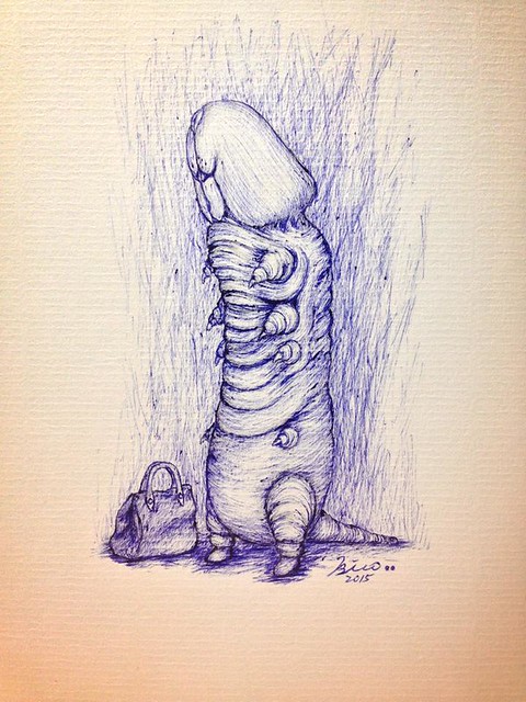 作品理念:BOB,一名長期銷售免治馬桶的家具廠業務員。自從次貸風暴後,進貨的廠家越來越少,勉勉強強靠著少數的老客戶支撐業績的他,每天都挺著小肚子在艷陽下騎著淑女車奔馳著。最近同期進公司的SCOTTY 已經轉調到了系統家具部門,連晚兩年進來的小JAMES 都在上個月娶了一個美女空姐老婆,只有他似乎萬年如一日地每天拎著破舊的咖啡色公事包走訪客戶。興趣是收集可口可樂紀念玻璃瓶的他,目前唯獨缺了1988 跟1966 兩個年份。下班後休閒娛樂就是看電視購物,然後買進一堆純粹的裝置藝術,像是前天到貨的那台多功能除草機--金屬一體直杆設計、1800W 超大功率、內裝強勁硬軸,號稱三百六十度毫無死角...直到他想起他家根本沒有草皮。這幾個月來發覺自己有了健忘的小毛病,在員工餐廳常常多拿一份餐點,因為他忘記自己有四雙手,正覺得中年發福的危機逐漸朝自己逼近。近期的小確幸是吃甜筒抽到廠商活動的全套公仔磁鐵組,不過他還沒搞清楚那個有眼睛的綠色小東西到底是一顆奇異果還是長毛的雞蛋。