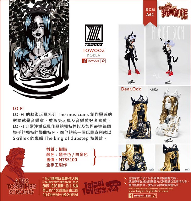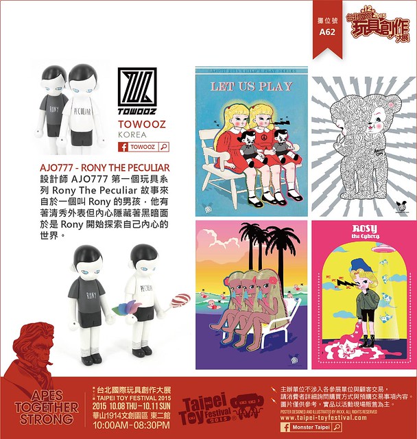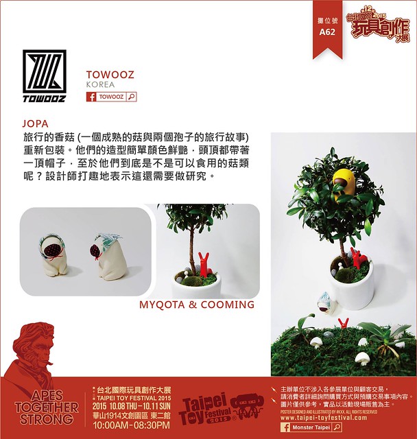 TOWOOZ 為藝術玩具團隊,旗下共有九支優秀圖像藝術創作者。AJO777、JOPA、E.GU29 各自擁有不同獨特創作風格。TOWOOZ 期待將各種不同的設計師角色推廣至世界各地!