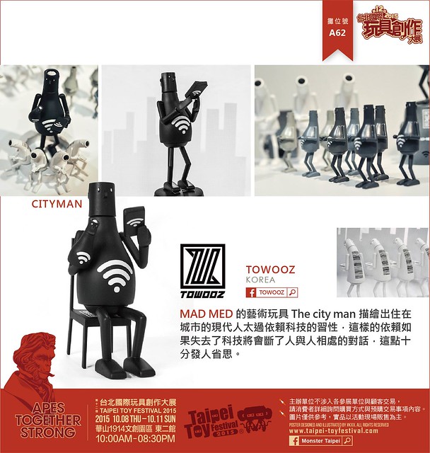 MAD MED的藝術玩具The city man描繪出住在城市的現代人太過依賴科技的習性,這樣的依賴如果失去了科技將會斷了人與人相處的對話,這點十分發人省思。