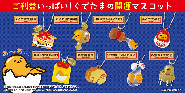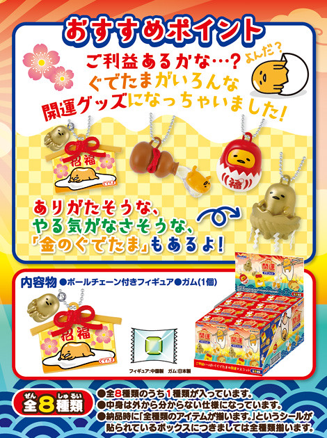 由日本知名盒玩品牌RE-MENT 公司所推出的人氣角色「蛋黃哥」的最新盒玩作品:「開運蛋黃哥」(ぐでたま 開運マスコット)登場囉!!繼之前推出了「蛋黃哥造型橡皮擦」的食玩作品之後,RE-MENT 公司又要結合「蛋黃哥」推出造型開運聖品的鑰匙圈,小編只能說蛋黃哥:你守備範圍真的是太廣了啊!!